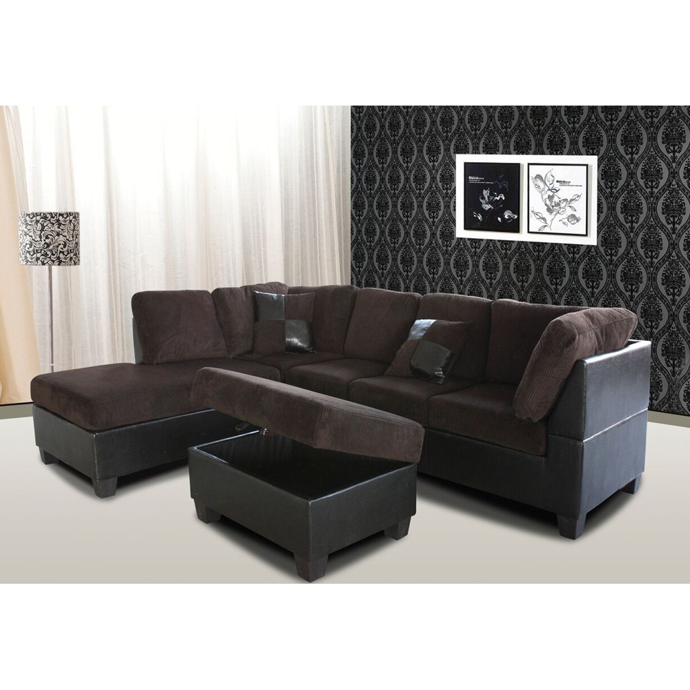 This beautiful Spacious 3-piece sectional sofa w/Left Chaise, with ottoman: includes 2 accent pillows.