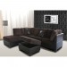 bonded leather. Hardwood frames covered in espresso faux leather; cushions upholstered in stain-resistant