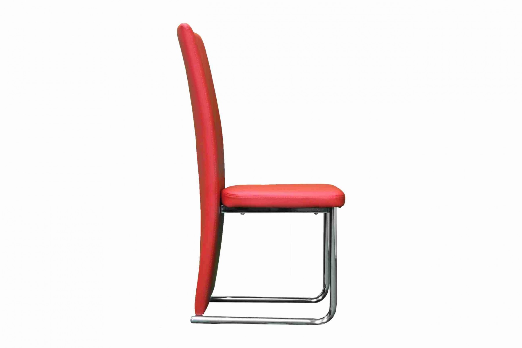 Side Chair PU Leather in Red (Set of 2) Product Details: Seat/Back Material: Upolstered- PU Leather Legs: L-Shape Swing legs Metal/Polished Chrome Chair Style: Solid Long Back and Solid Seat Cushion. Assembled 40.5’ X 18’ X 18’ Seat 18.5’H ITEM # UH-957-RED UPC#760510470211 - Reviews